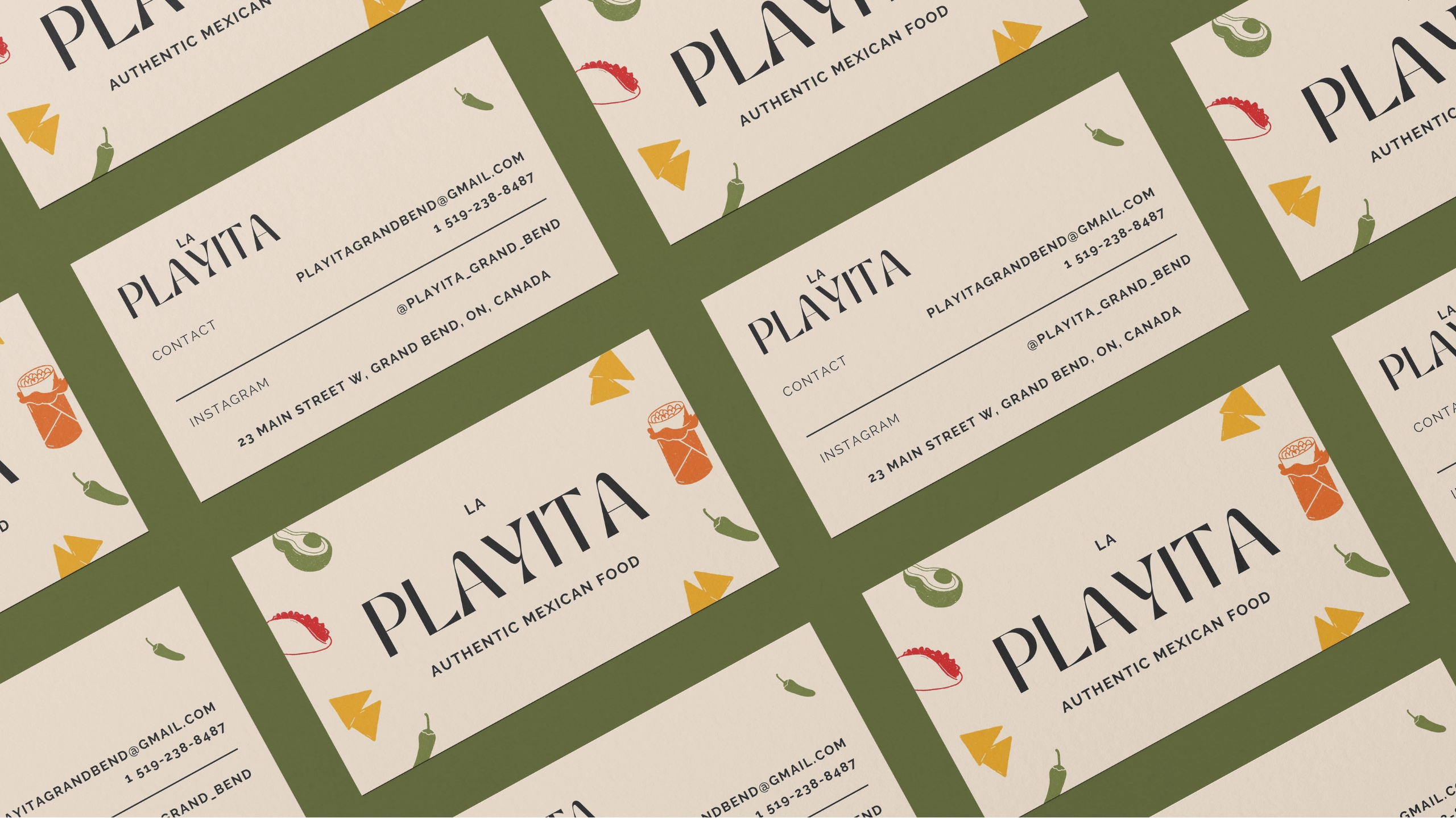 The branding for La Playita features hand-drawn elements that reflect the vibrant, authentic spirit of Mexican cuisine. The fiery, fun color palette complements these illustrations, capturing the bold flavors and lively atmosphere of the food. This dynamic design creates an inviting and playful brand identity, perfectly embodying the essence of La Playita.